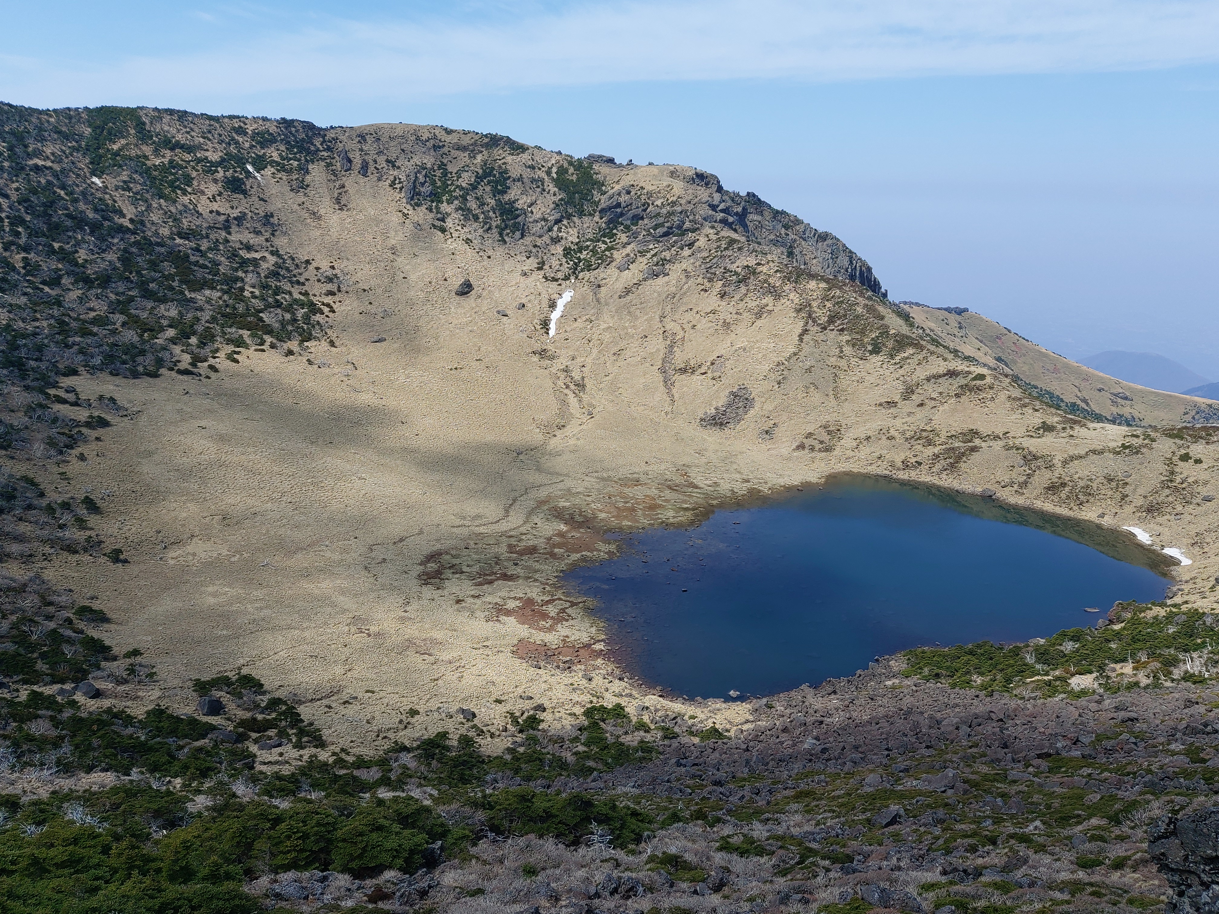 제주도 한라산 백록담의 추억 작년인가 제주도에 방문했다. 매번 맛집,경치 구경이 싫어서 첨으로 한라산을 등반해봤다. 지인들 다 자는데, 나혼자 새벽에 일어나서 ㅎㄷㄷ 혼자 버스타고 한라산을 올랐다. 아래 사진이 한라산 백록담이다. 난 처음 올라서 별 생각이 없었지만, 나중에 갈때 택시기사님이 말하길.. 이렇게 볼수 있는게 흔치 않은 일이란다. 정말 깨끗한 한라산 백록담. 사진으로봐도 좋은 기가 느껴진다. 올해는 대박이 났으면 좋겠다.